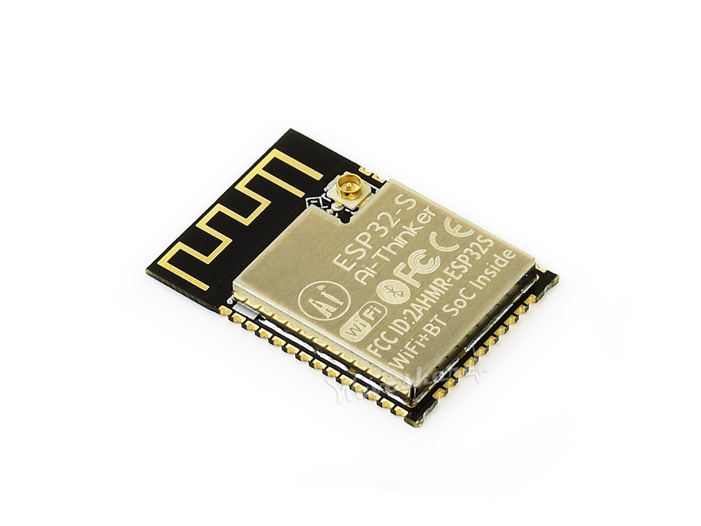 Derfor er der mange, der foretrækker modul udgaven af ESP32: Her har Espressif lavet en større del af arbejdet på forhånd (incl. antennen), så den er lettere at gå til. På billedet herunder kan man endda se, at der også er et stik til en ekstern antenne, hvis man ønsker bedre dækning.