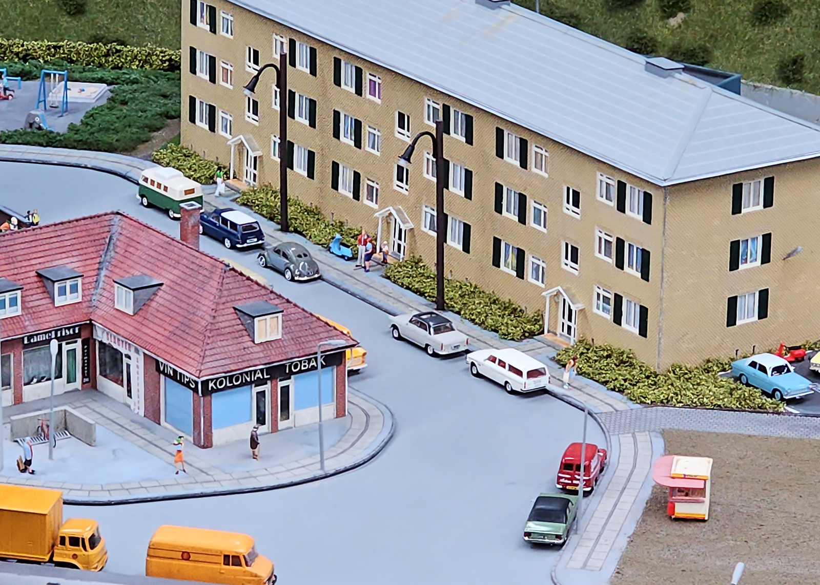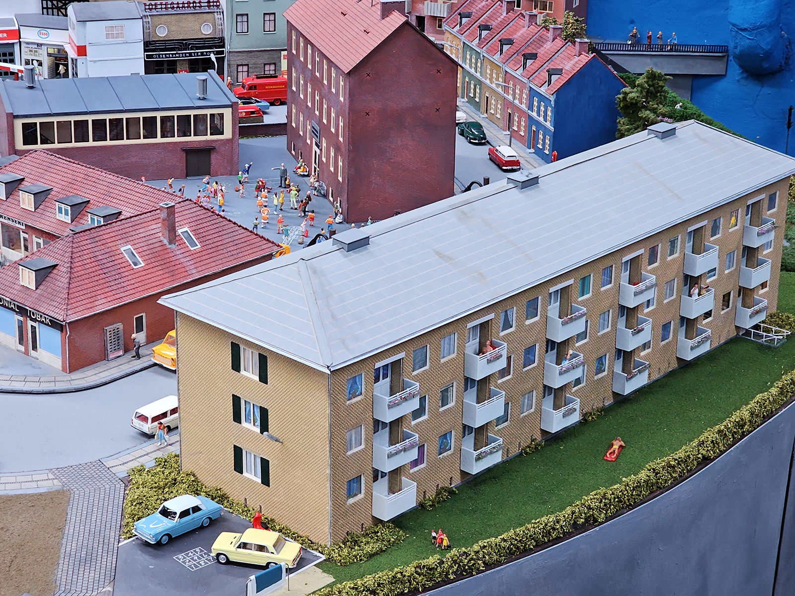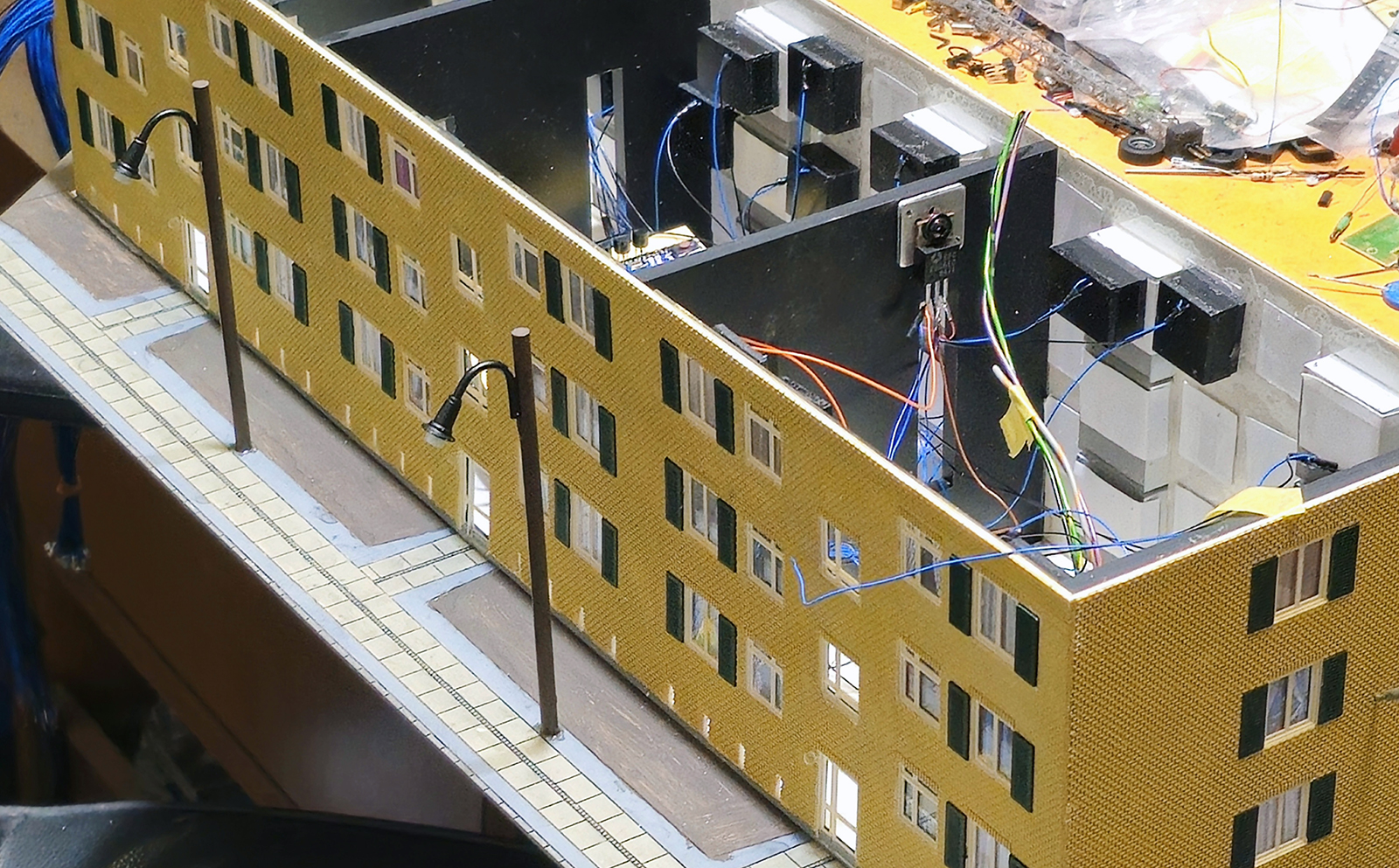 Bygningerne er tegnet i Autocad og 3DsMax. Det meste fræst i polystyren. Altaner, trappeopgange og små dele er 3D print.