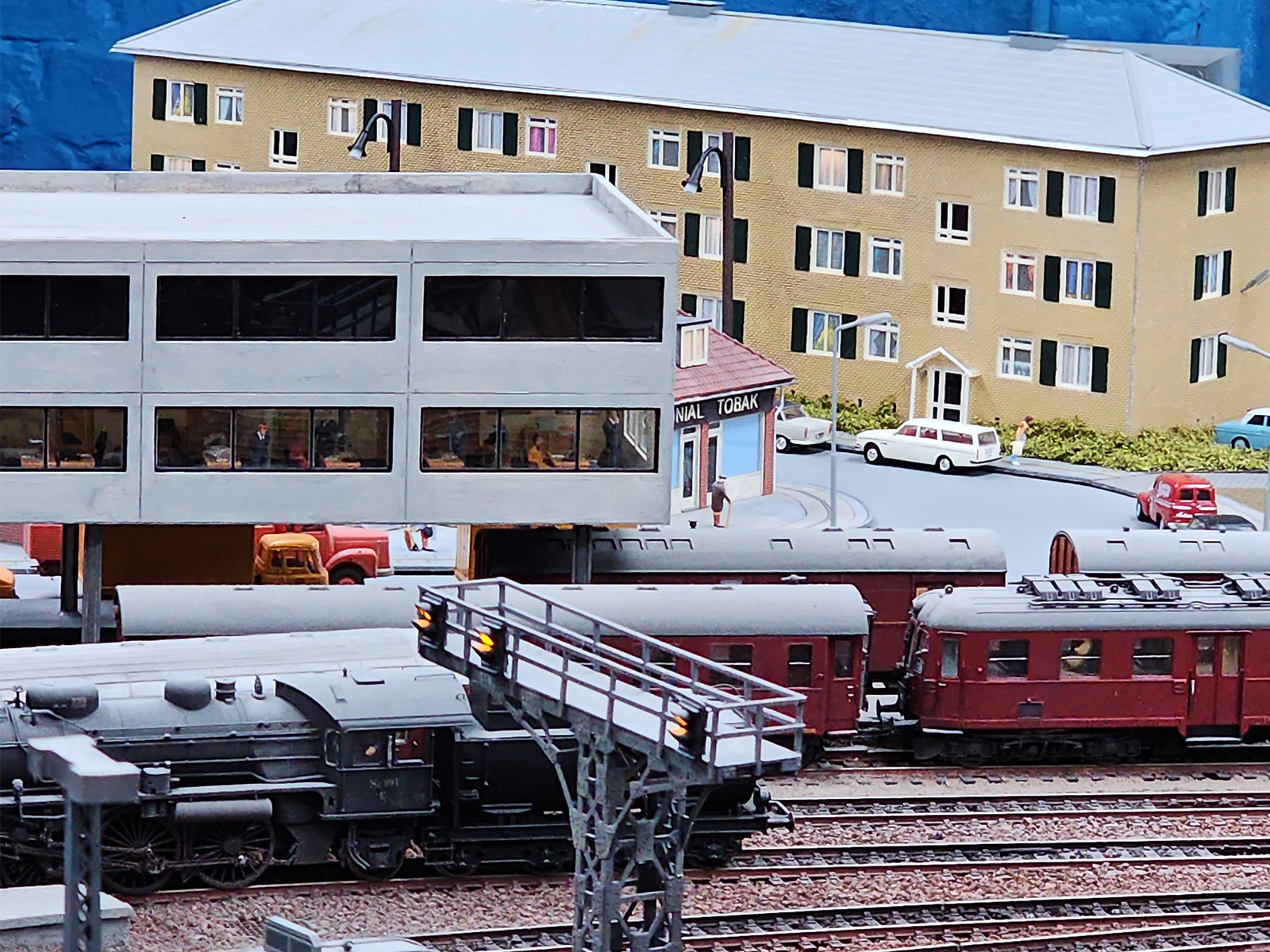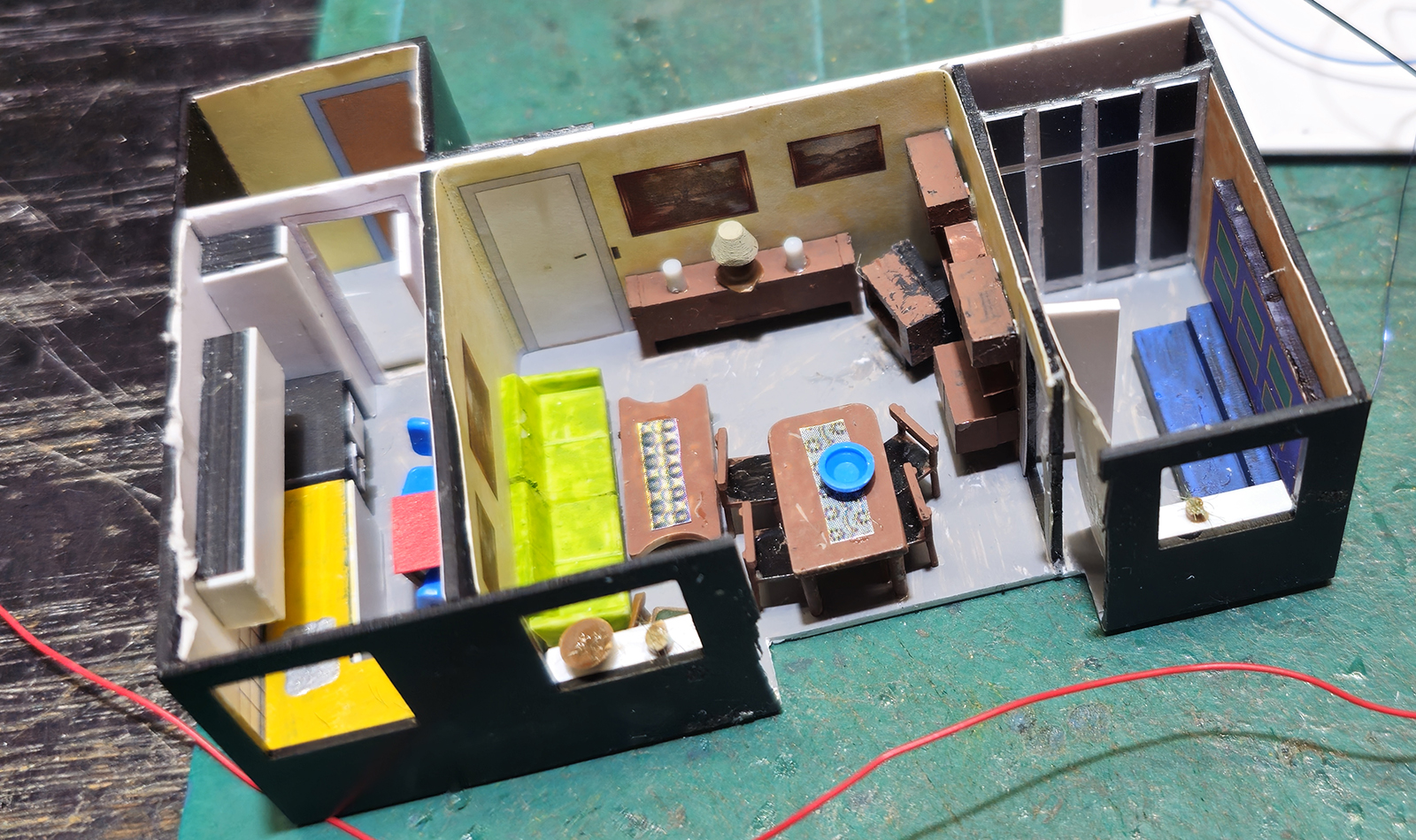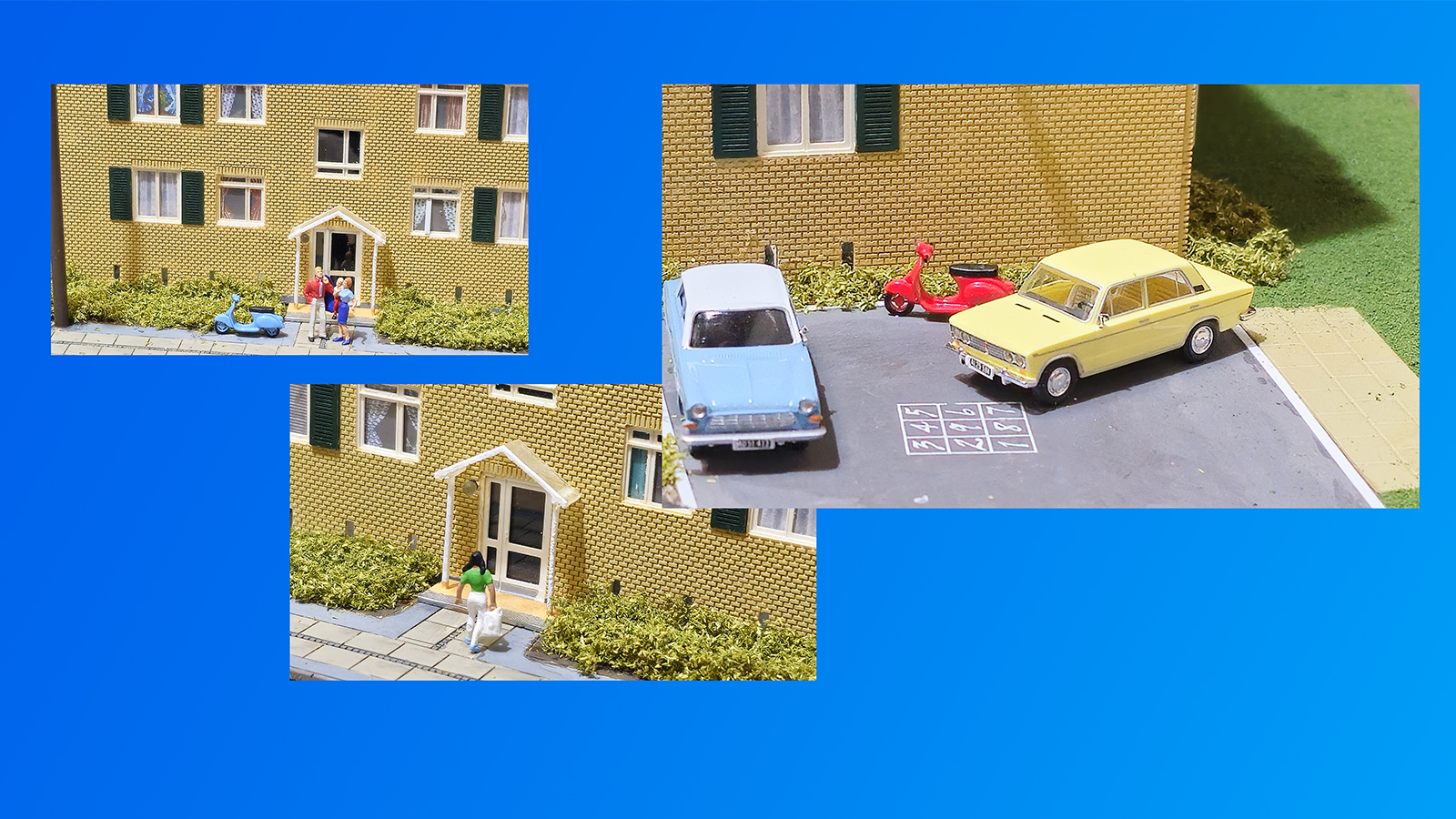 Bygningerne er tegnet i Autocad og 3DsMax. Det meste fræst i polystyren. Altaner, trappeopgange og små dele er 3D print.
