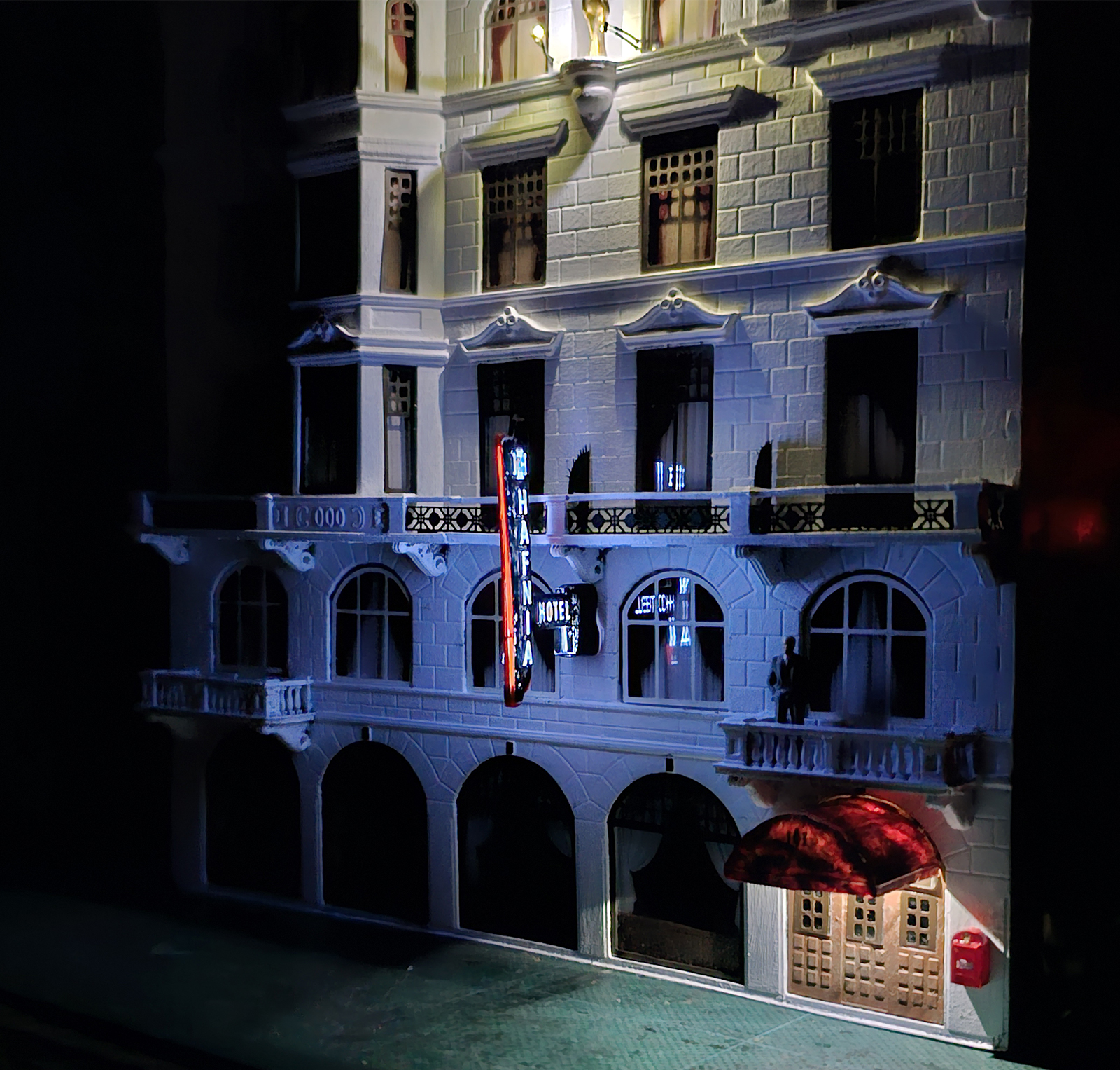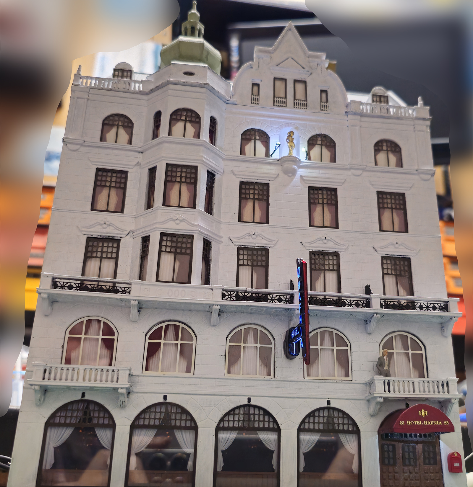 Jeg har brug for et luksushotel overfor en stations bygning, og jeg har valgt Hotel Hafnia som det så ud i 1971-72. Jeg har altid syntes at Det var en flot og ikonisk bygning med tårnkuppel og den stjerne formet facade.