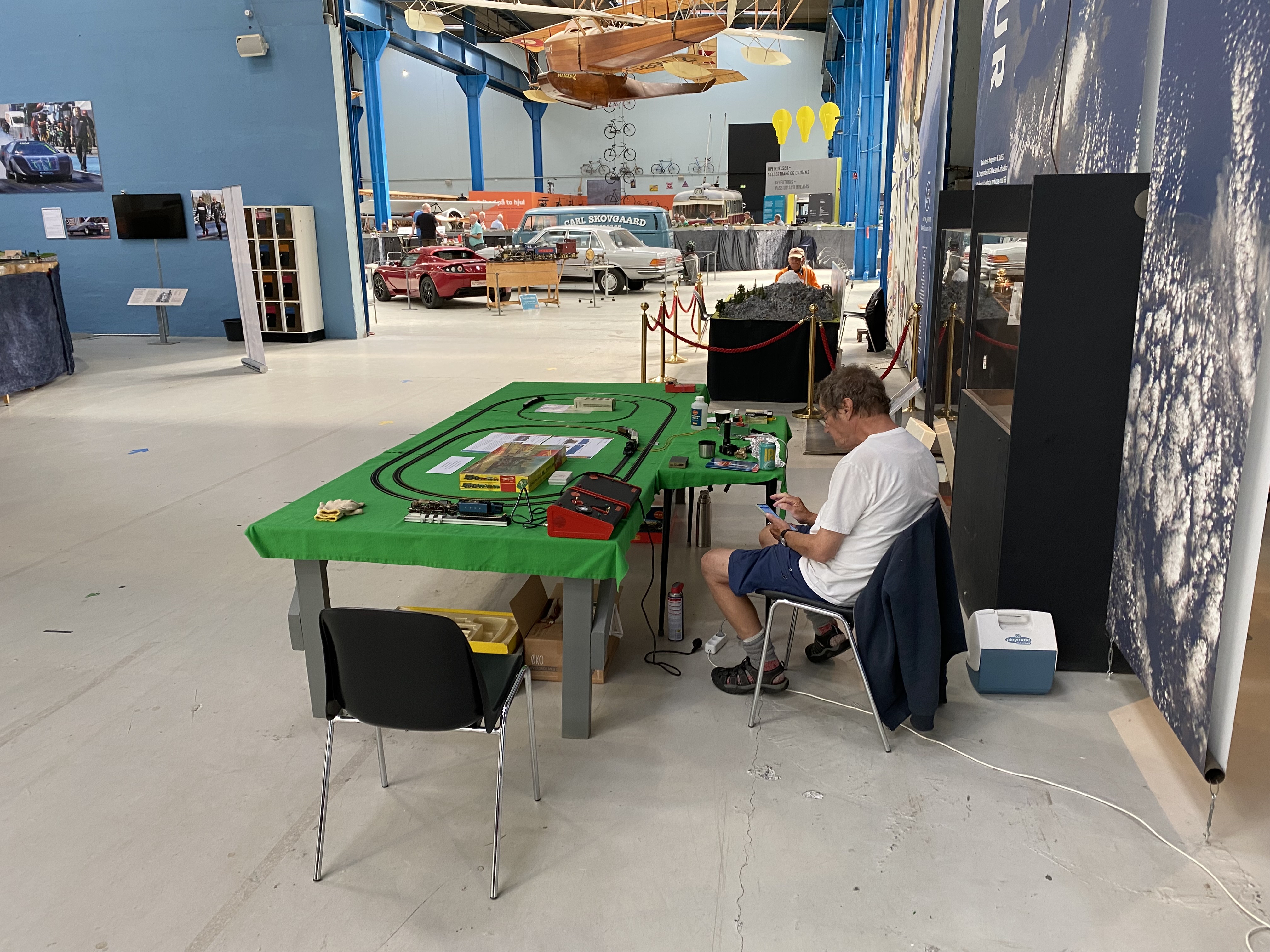Hornby R1041 Live Steam Mallard Set, et ægte damplokomotiv, det har jeg aldrig set før i den størrelse, 1:76 gætter jeg på, vandet hældes i beholderen der sidder i tenderen og cylindrene sidder som på forbildet og driver lokomotivet.