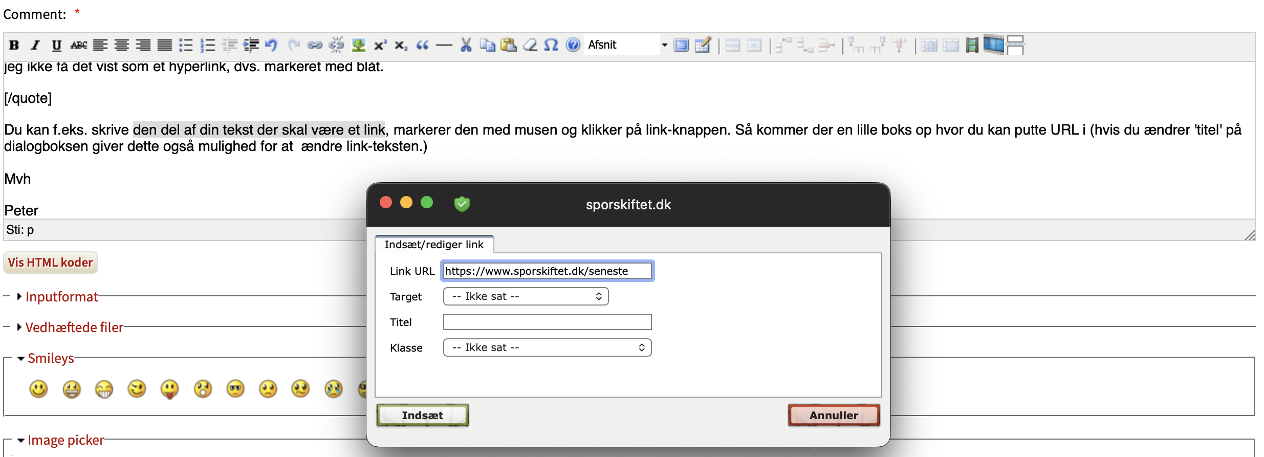 Hvordan indsætter man links i sit indlæg? Jeg kan ikke få det til at virke.
