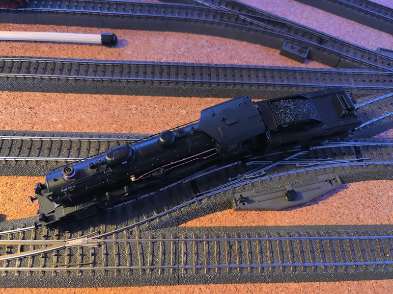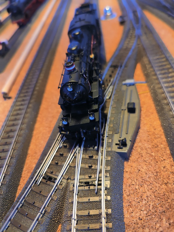 Du må gerne fortælle hvilken afstand mellem lok og tender, du kører med. Jeg endte med at koble lok og tender helt fra, så loket kun trækker tenderen i ledningerne. Det kører bedre, men har stadig tendens til at afspore både for og bag.