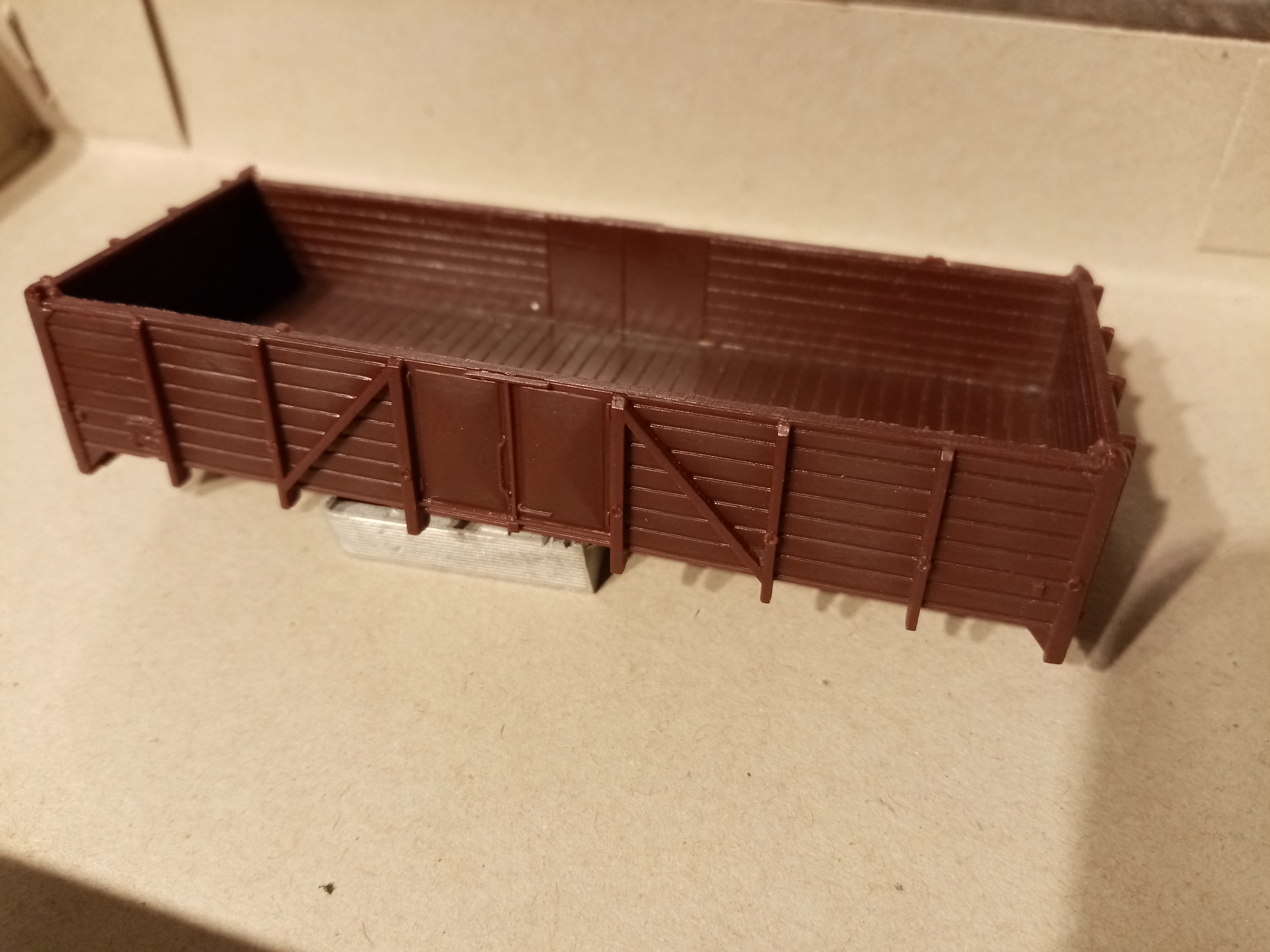 Støbt vognkasse til PB vogn, støbt i korrekt brun farve 100,- kr