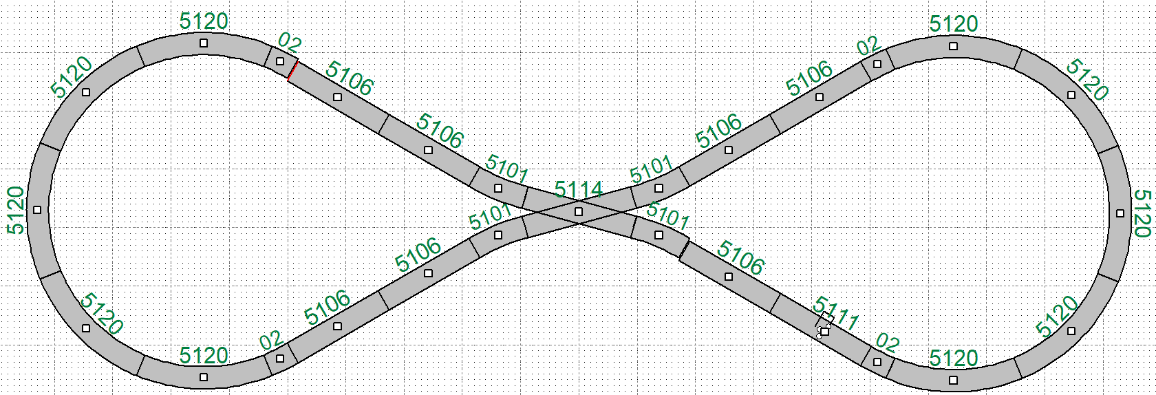 10 stk. 5120 er vel også for specielle til at være med i et startsæt? Og så vil der også være for mange buede skinnestykker, hvis man medregner de 10 5120 plus de andre buede? Og de fire 5101 plus de fire 5102 kan heller ikke alene lave et ottetal.