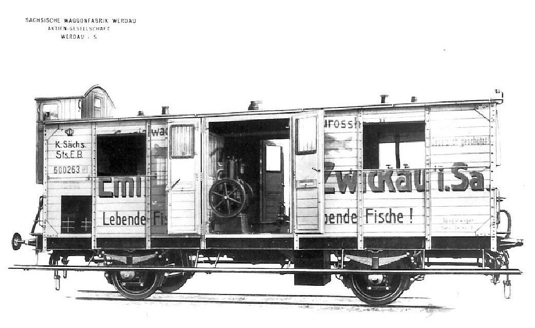 Vi ved, at den blev bygget på baggrund af vognkassen fra en G02 godsvogn fra vognfabrikken HAWA og indrettet til transport af levende fisk til Tyskland fra dambrug omkring Lunderskov. Vognen indeholdt fire store bassiner med i alt 10.000 vand og havde indledningsvis en Benzol motor, der drev en iltningsapperat. Yderligere kan vi læse i DRM, at den havde trykluftbremse, varmeledning, langsgående løbebrædder og ditto stænger.